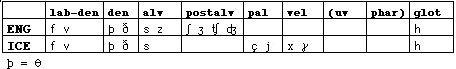 There are some important differences between English and Icelandic fricatives, as the following table shows (fortis to the left, lenis to the right of each pair):