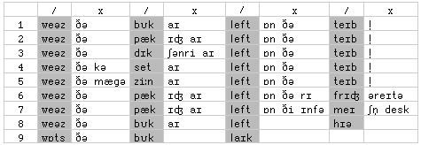 / = stress x = no stress